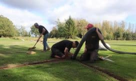 The drainage project was broken down into two phases commencing with Foxes Run and Badgers Sett where green drainage design options were presented, with agreement to install PCD (passive capillary drainage) to be installed to 19 greens over a 4-week, with works monitored by STRI.